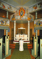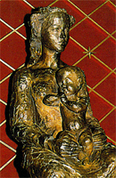 På alteret står en frittstående skulptur; Maria